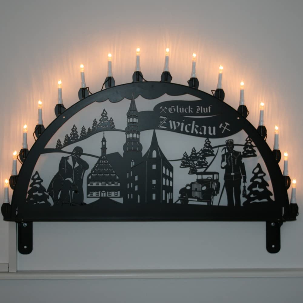 Produkt: Holz-Schwibbogen / Lichterbogen inkl. Beleuchtung - Hergestellt im Erzgebirge! Motiv: Bergmann Größe: 50 cm Material: Birkenholz Beleuchtung: 220 Volt Beleuchtung mit 7 Lichter (inkl. einer Ersatz-Glühbirne) Energiekennzeichen: Da jede Lichtquelle (Brennpunkt) unter 30 Lumen hat, ist keine Energiekennzeichnungspflicht notwendig und möglich! Wichtige Hinweise: Unsere Holz-Schwibbögen werden ausschließlich im Erzgebirge hergestellt! Holz ist ein natürlicher Rohstoff, deshalb stellen kleine dunkle Einschlüsse oder Streifen keinen Qualitätsmangel dar Holz-Schwibbögen sind nur für Innenräume Vor Feuchtigkeit schützen