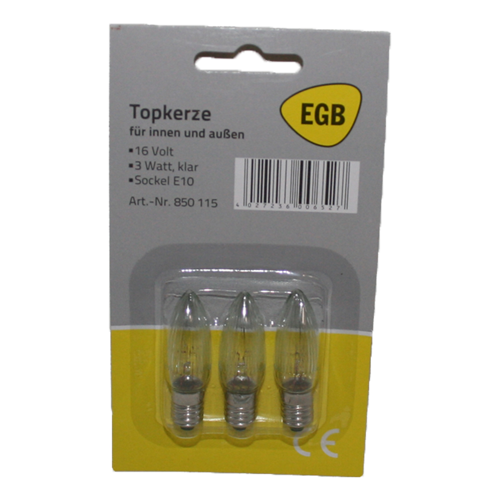 Produktinformationen "9x Spitzkerze Glühbirne Ersatzbirne Topkerze für Lichterkette / Schwibbögen / Lichterbogen - 16V / 3W E10 halb geriffelt Outdoor"