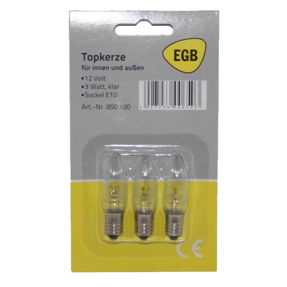 Produktinformationen "9x Spitzkerze Glühbirne Ersatzbirne Topkerze für Lichterkette / Schwibbögen / Lichterbogen - 8V / 3W E10 halb geriffelt Outdoor "