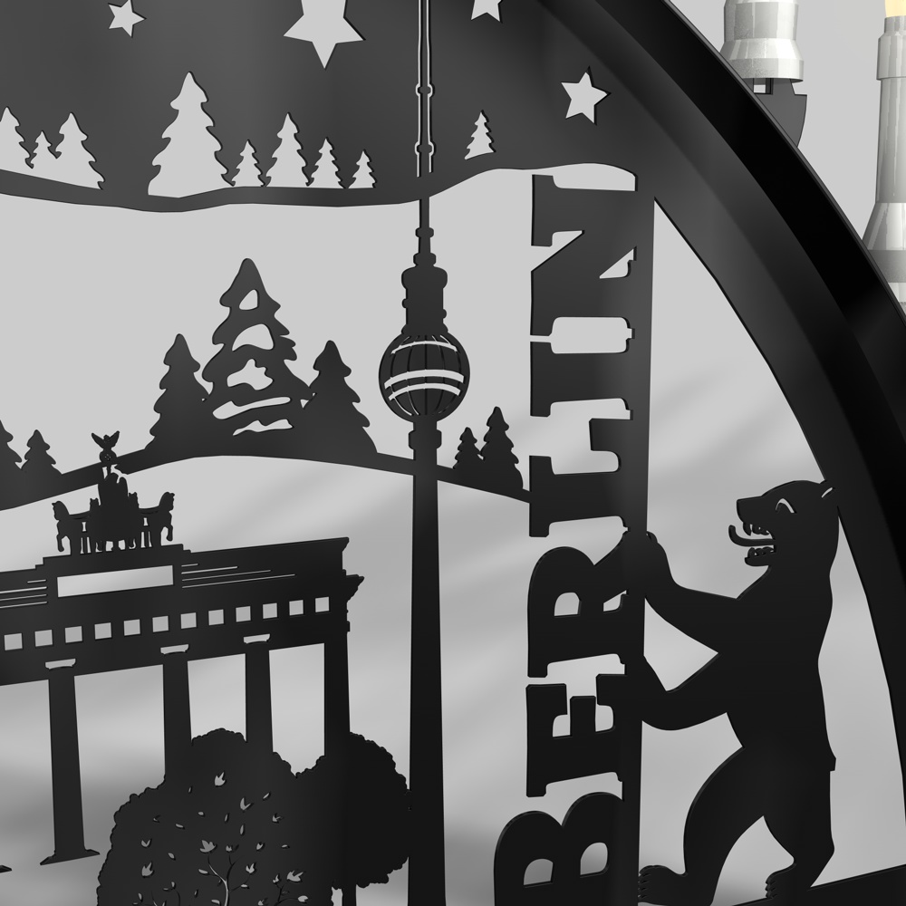 Außenschwibbogen Schwibbogen Lichterbogen Metall - Motiv: Berlin 1,2 m tiefschwarz (RAL 9005) glänzend