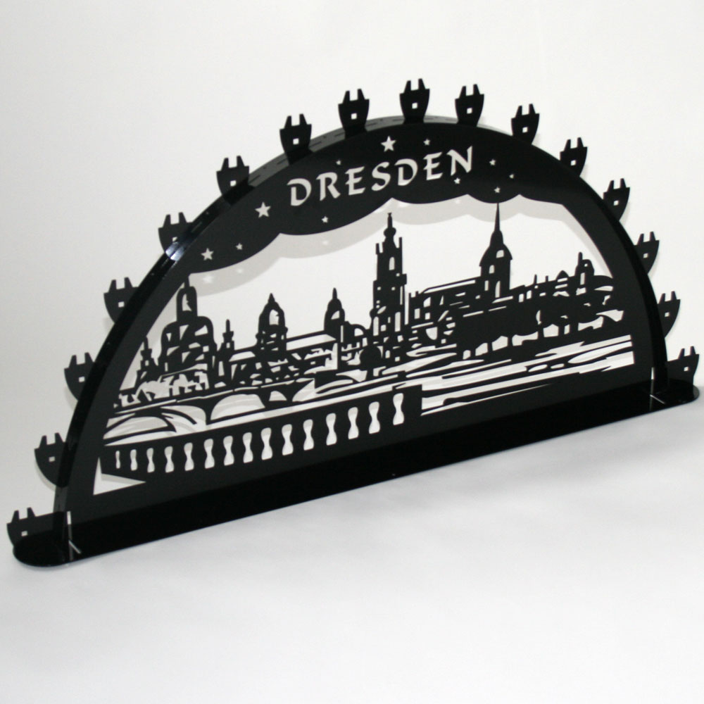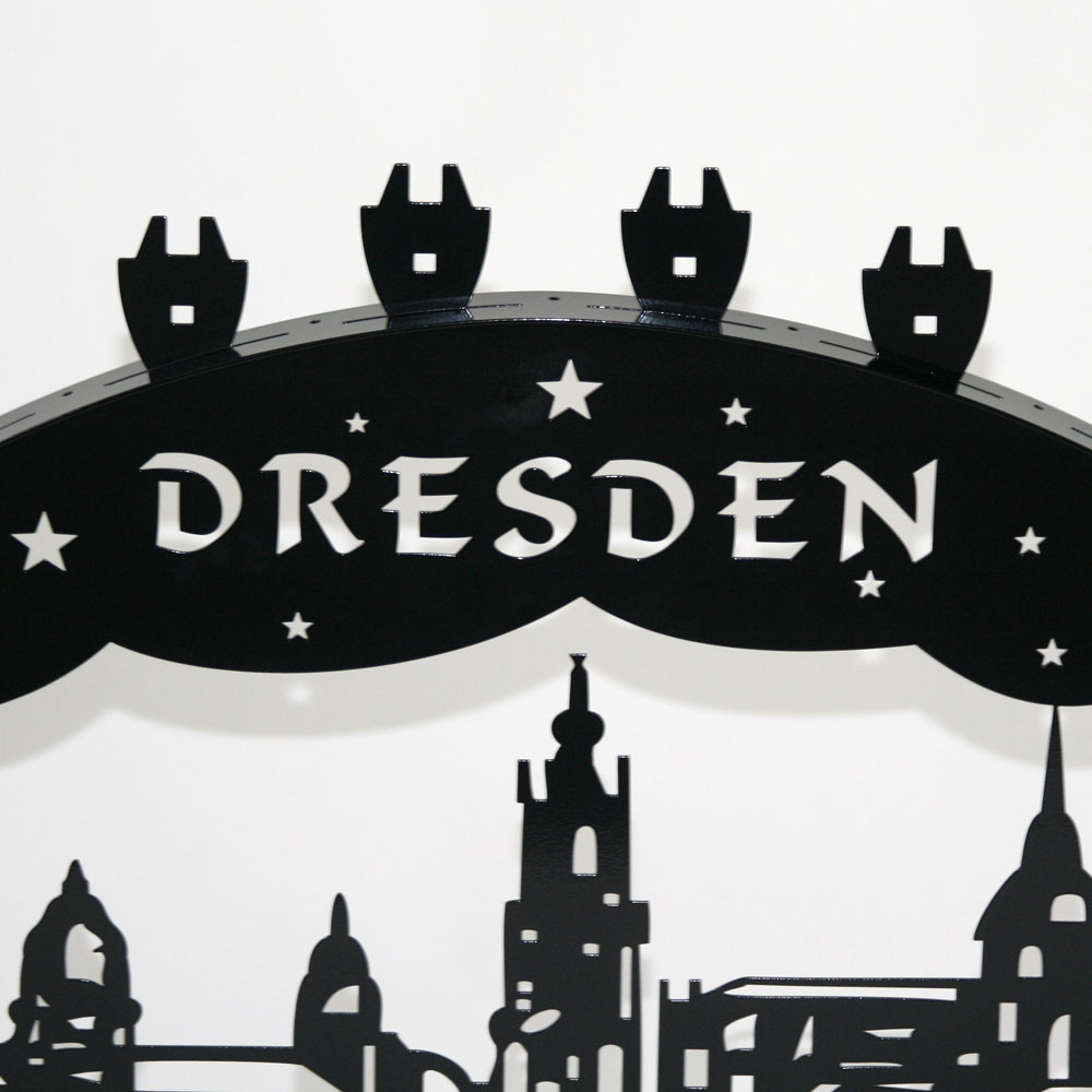 Produktinformationen "Außenschwibbogen Schwibbogen Lichterbogen Metall - Motiv: Dresden Canalettoblick 1,2 m tiefschwarz (RAL 9005) glänzend"