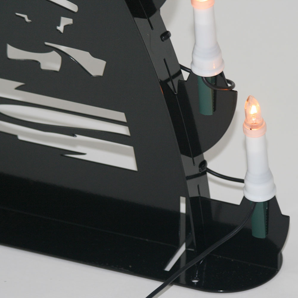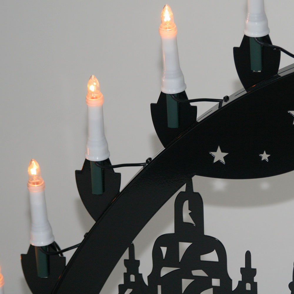 - Der Schwibbogen ist durch die Verarbeitung von Stahl und seinen Verstrebungen sehr robust gegen äußerere Einflüße und damit deutlich stabiler wie vergleichbare Schwibbögen aus Aluminium