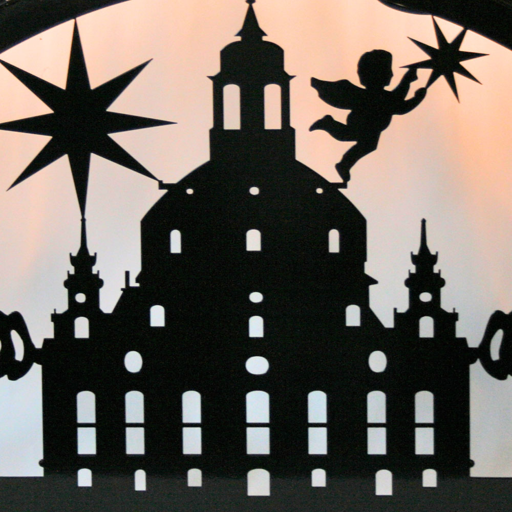 Produktinformationen "Außenschwibbogen Schwibbogen Lichterbogen Metall - Motiv: Dresden Frauenkirche 1 m tiefschwarz (RAL 9005) glänzend"