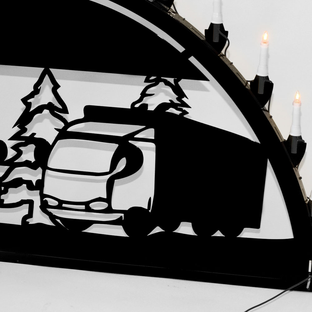 Produktinformationen "Außenschwibbogen Schwibbogen Lichterbogen Metall - Motiv: LKW 1,2 m tiefschwarz (RAL 9005) glänzend"
