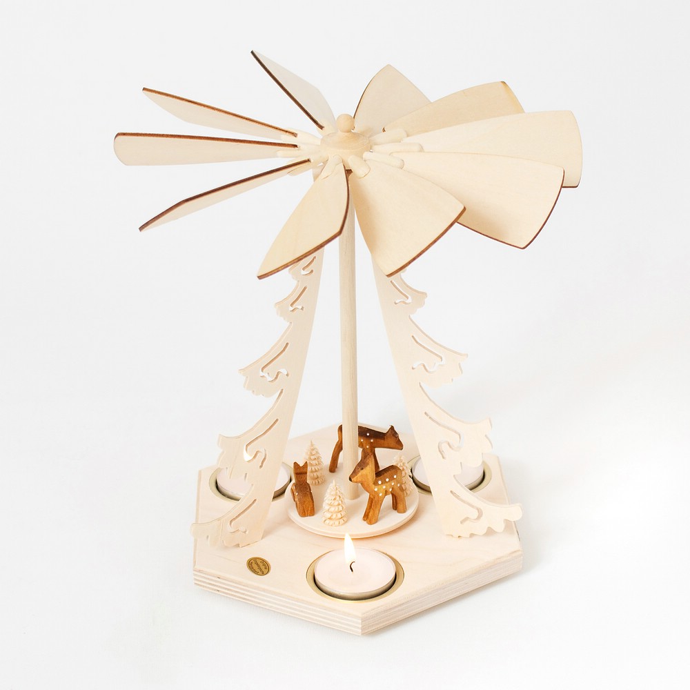 Produkt: 2-stufige Weihnachtspyramide mit Teelichthaltern - Hergestellt im Erzgebirge!Motiv: Kinder (Waldleute)Länge x Breite x Höhe: ca. 41 cm x 41 cm x 44 cmMaterial: Birkenholz lackiertUmfang: Im Lieferumfang sind neben der Weihnachtspyramide auch bereits 3 Teelichter enthaltenWichtige Hinweise:Unsere Holz-Pyramiden werden ausschließlich im Erzgebirge hergestellt!Holz ist ein natürlicher Rohstoff, deshalb stellen kleine dunkle Einschlüsse oder Streifen keinen Qualitätsmangel darHolz-Pyramiden sind nur für InnenräumeVor Feuchtigkeit schützenAchtung: Benutzung der Weihnachtspyramide nur mit Pyramiden-Teelichtern!! Holz ist ein natürlicher Rohstoff, deshalb stellen kleine dunkle Einschlüsse oder Streifen keinen Qualitätsmangel dar Holz-Pyramiden sind nur für Innenräume Vor Feuchtigkeit schützenAchtung: Benutzung der Weihnachtspyramide nur mit Pyramiden-Teelichtern!!